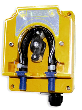 A peristaltic pump specially designed for the automatic dosing of chemical products to washing machines.